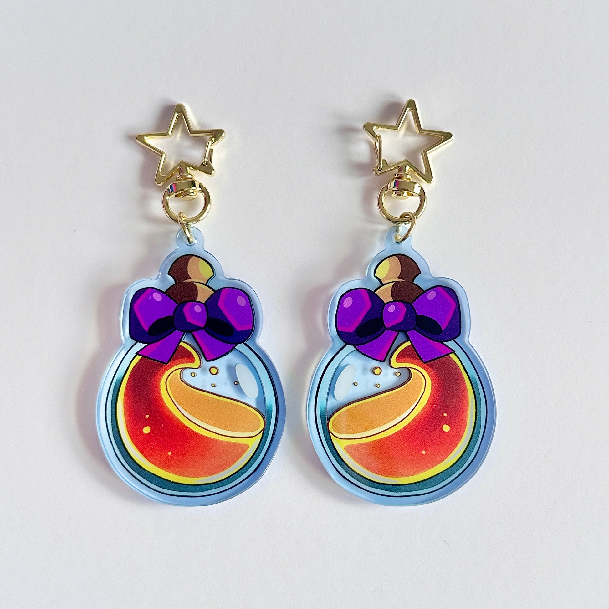 - 2,5-inch double-sided light-blue clear acrylic keychain featuring a bottle of Nectar from Hades, with a see-through window